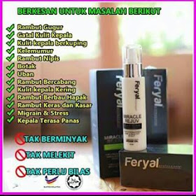 Feryal Miracle Rejuv meningkatkan pertumbuhan & menumbuhkan rambut baru serta mencegah kelemumur dan keradangan folikel rambut dan juga berfungsi untuk menghilangkan stress.